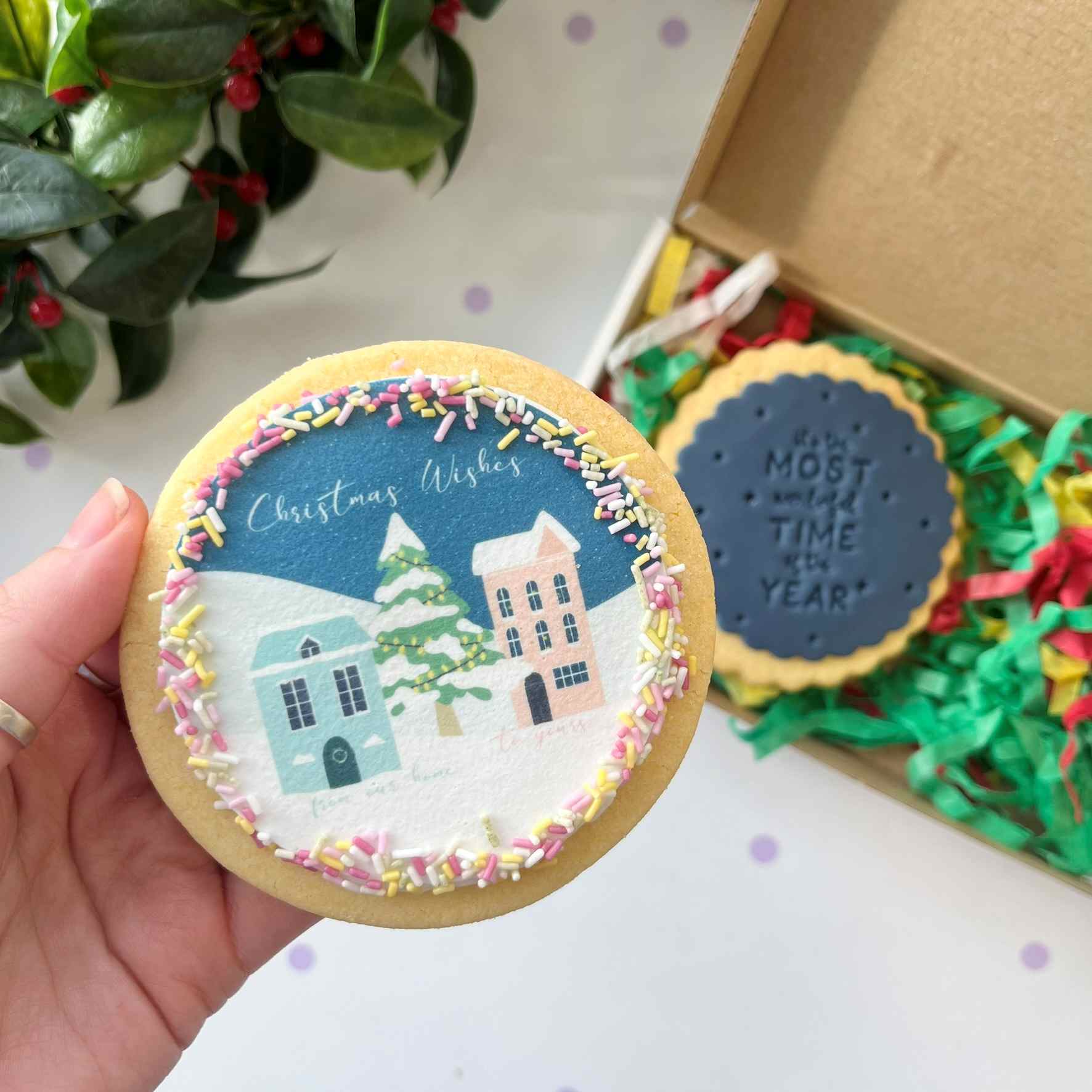 These cookie sets come with the sprinkle cookie shown & a cookie of your choice, they are wrapped in clear compostable bags with festive tissue. These fit through most letterboxes.